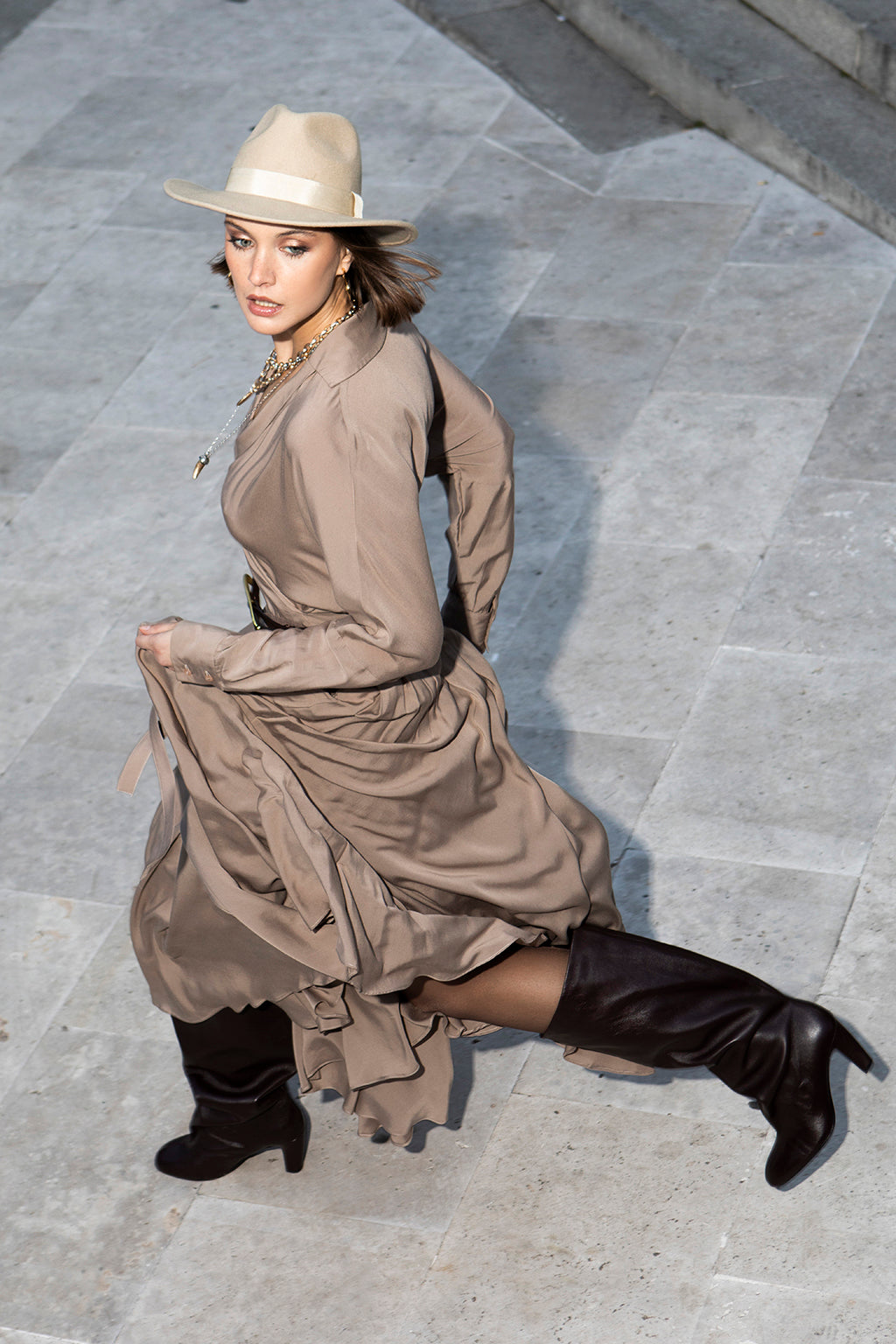 Precioso. Queda como un guante. Prenda única y de alta calidad. Muy contenta con mi compra. Combina perfectamente con otras prendas de la colección.
