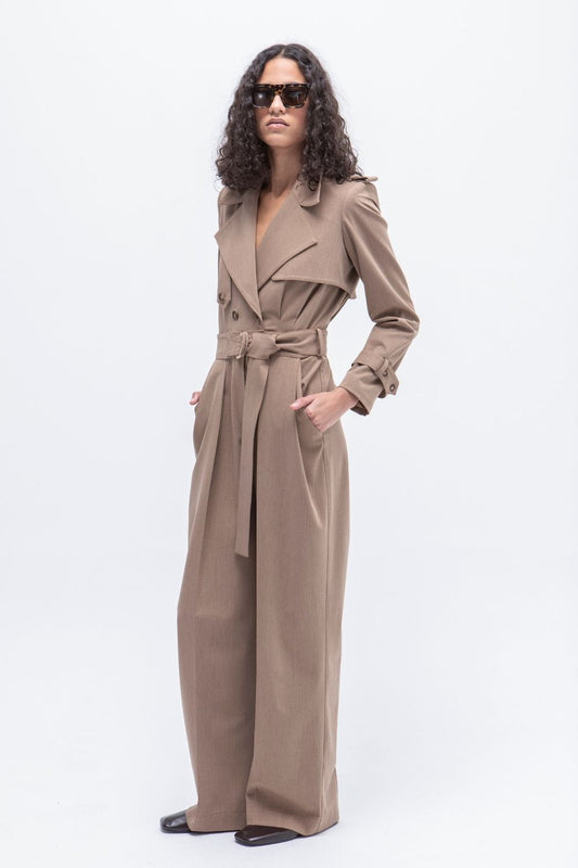 Los tejidos cálidos y envolventes dialogan con siluetas fluidas que evocan movimiento. Los tonos de la tierra —ocres, arcillas, grises minerales— se entrelazan con destellos metálicos y matices profundos de verde y azul, símbolos de resiliencia y expansión. Cada prenda es un puente entre lo clásico y lo vanguardista, entre lo orgánico y lo urbano.