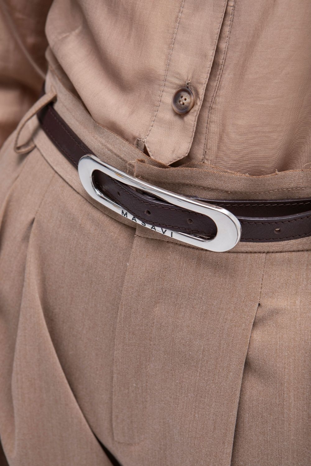 Cinturón elegante y moderno, elaborado en piel de cordero marrón. Su diseño minimalista se realza con una distintiva hebilla metálica en acabado plata, que aporta un toque contemporáneo y exclusivo. Su ajuste personalizable garantiza comodidad y estilo en todo momento.